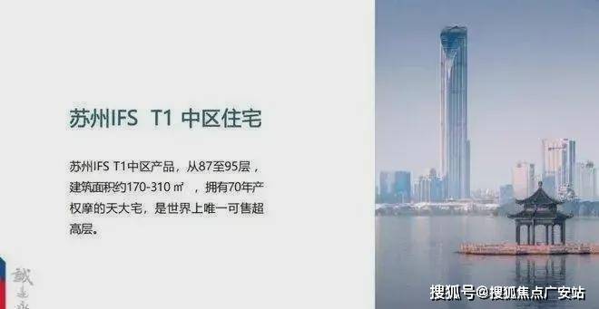 “江苏第一高”“全球十大可售超高层地标住宅”,世界上唯一可售超 高层;L97-L100 云端摩天大宅,70年产权,垂直高度327米起;