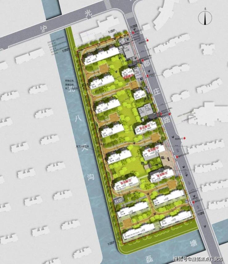 项目地处上海市闵行区颛桥核心区,东邻都庄路,西侧南侧紧邻水系,距离双柏路地铁站仅800米。整体布局注重景观资源利用,引入西侧江景资源,11栋54米塔楼错落布置,搭配4栋23米多层洋房,形成张弛有度的空间序列。通过多条东西向景观轴线,将河景引入南北向景观通廊。