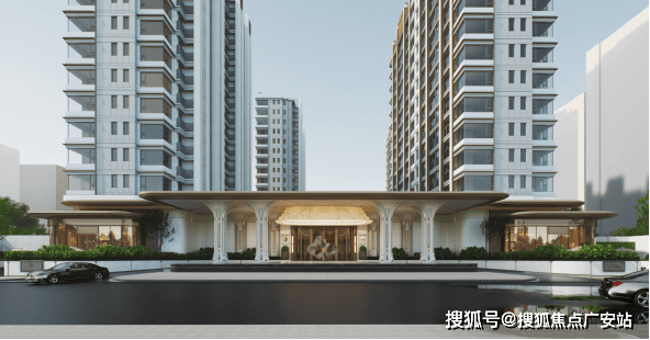 主入口约70M超宽界面,艺术门廊结合玉兰花柱、水景浮岛和玉兰花雕塑,打造礼仪式归家落客界面。约350米长的城市华墙界面,优雅弧线如丝滑流水,是项目面向城市的封面,是业主的归属感与“家”的领域感。