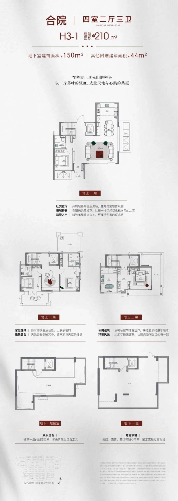 联排合院:约190-245㎡,独门独院;均价约10万/㎡,总价约2000万起。