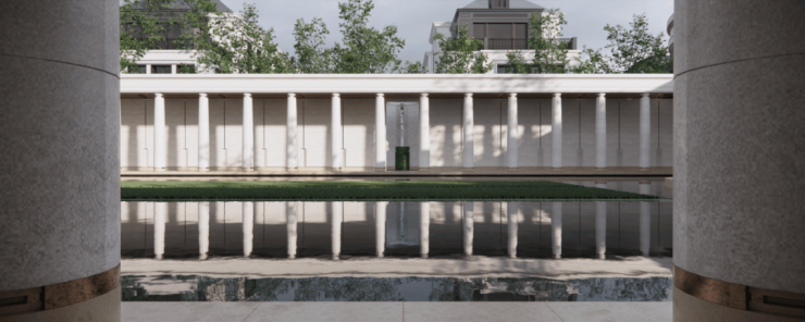 这些柱廊形成了归家路径上的华丽序列,既是风雨无阻的庇护所,也是漫步其下、感受光影流转的艺术长廊,日常归家变成了每一次都充满期待的美学巡礼。