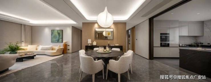 同时入户玄关甄选意大利进口「卡拉卡塔金大理石」,金色线条与碧翠纹路浑然天成;餐厅背景墙采用劳斯莱斯同款的「法国秋香木」,历经“约0.6毫米加厚木皮+三底三面涂装+手工打磨”。
