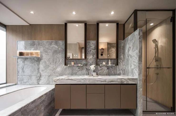 目之所及,细微之处皆有文章。康定壹拾玖的墙面,严选安第斯雪或晓山青珍贵石材,与木饰面、特色定制墙布组合设计,以丰富的层次,营造空间的呼吸感;客厅、餐厅、卫生间等区域地面定制石材,赤足走过,温润细腻的触感。
