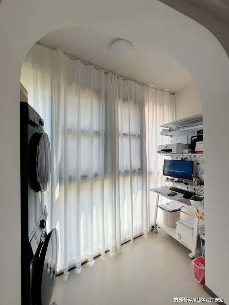 当夏季风扇低转速时,风扇灯将热浪切成薄片,光影在墙面投下动态复古电影胶片效果;靠墙定制整面收纳柜,其中开放格占比30%,用来展示业主淘来的好物件;而相比长方形餐桌的主客之分,圆桌消除等级感,还原家庭聚餐的平等氛围。