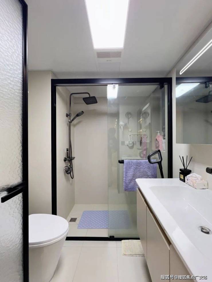 白色调卫生间配合干湿分离设计,是融合美学、实用与健康的空间优解。白色使光线反射率提升至92%,5㎡卫生间获得8㎡的空间错觉;干湿分离实现高峰期双人同步使用,并保护干区材质及家具。好设计,从解决最基础的不适开始。
