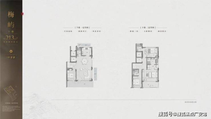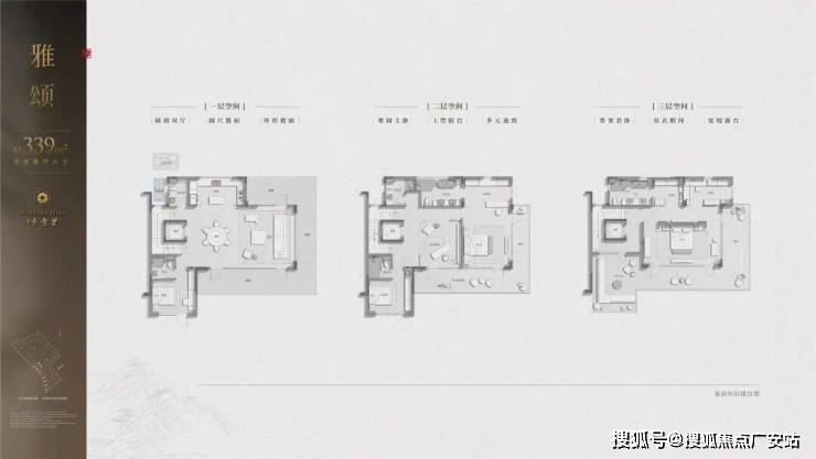 中间套300㎡地上三层双主卧套房设计,每间卧室连通露台或庭院;L型景观面实现“移步异景”。边套340㎡顶层阳光房与私家电梯入户,主卧独占整层,躺瞰超山梅花盛放,地下室可拓展为私人艺术馆。