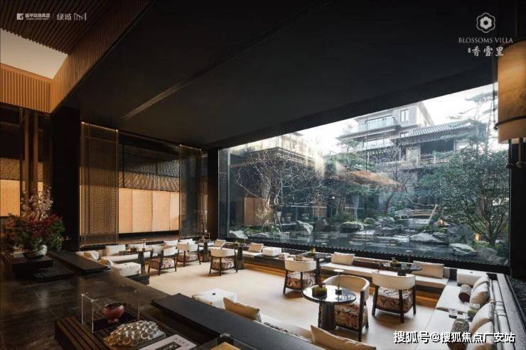 建筑立面:古今交融的诗意表达:外立面以香槟金铝板为基调,搭配蓝眼睛石材与玻璃幕墙,融合传统歇山重檐、纳福悬鱼等元素,既保留宋式建筑的对称美学,又赋予现代建筑的轻盈通透。合院组团采用三面庭院设计,L型景观面与环绕式檐廊,将超山梅影、丁山湖光引入每一扇窗景!