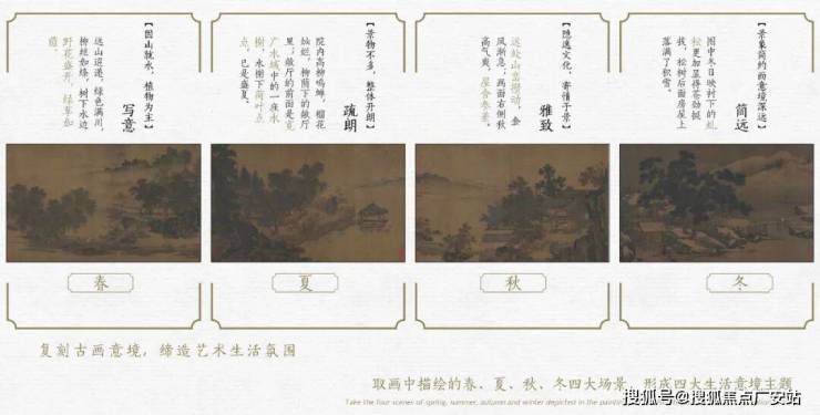 杭州古称钱塘,为南宋都城,宋朝在文化艺术领域的成就登峰造极,无论是在文学、绘画、建筑方面都有了质的飞跃,起到了承上启下的特殊地位。项目整体遵循宋代江南水乡的古城肌理,展现深宅贵府的隐奢调性,营造出“居山水、观天地”的空间意境。