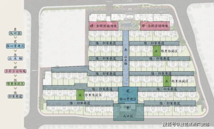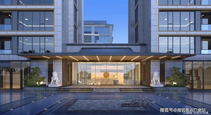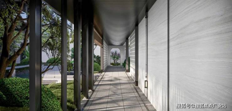 在园区规划和品质提升方面,注重高端社区的隐奢感和礼仪感,营造大宅的空间序列格局。空间轴线是建筑层次构建与韵律感的重要组成部分,本案在局促的场地条件下,通过合理高效的内部功能组织,采用多种虚实体块穿插和组合的方式,塑造贯穿南北的一条180余米主轴线。