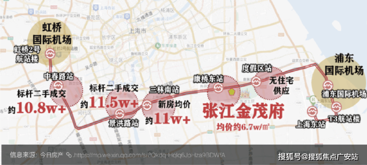 张江金茂府3.0距21号线申江南路站仅约888米(直线距离),近达11号线康新公路站,享受便捷畅行。21号线一期工程暂定于2026年12月底开通初期运营,21号线一期东延伸工程暂定于2027年6月底开通初期运营。(数据来源:进击的张江)在建的21号线,几乎将浦东重点产业、城市副中心全部串联,能级相当之高。未来,通过21号线1站即可换乘市域机场线康桥东站,高效对接上海虹桥枢纽和浦东机场两大核心交通节点!
