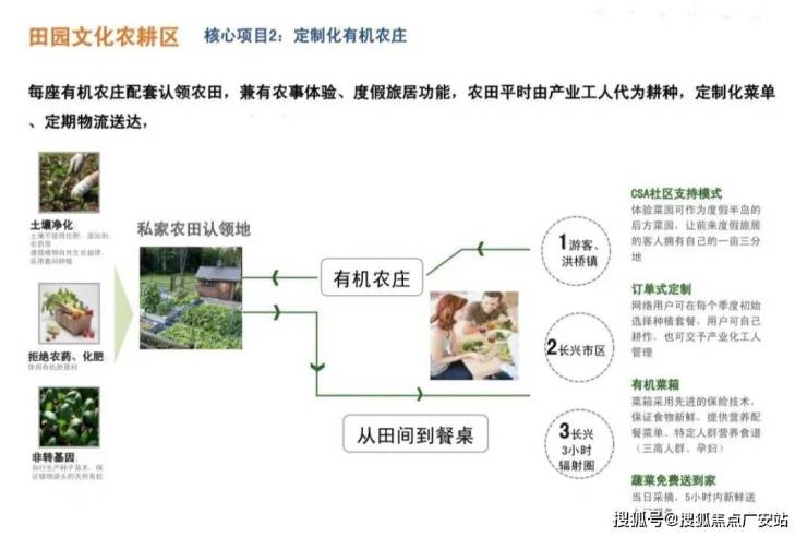 占地400亩的生态农庄公园(有机的瓜果蔬菜,绿色健康的家禽,热带植物观光区。反四季果蔬应有尽有,小区配备绿色健康生鲜超市,平价提供给小区业主。)