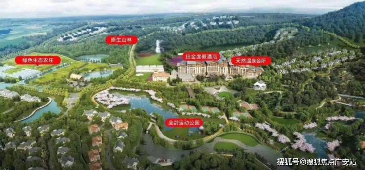 山泉瀑布,7.5万方的温泉度假酒店,4500方的温泉康养会所。