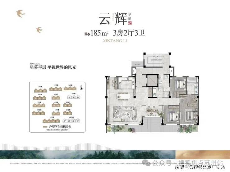 ·建筑面积约为184.54㎡3房2厅3卫的户型,此户型都采用了一梯一户的专属设计,私密性及舒适性极高。