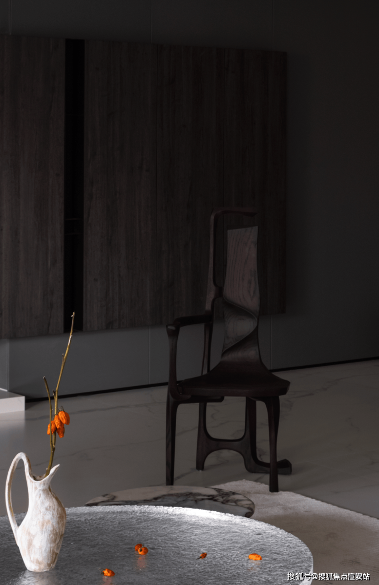 高级黑的纯粹静谧,营造出沉稳且个性的现代质感,松软的布艺家具、粗粝的陶器、永生的植物等简素物体,共同点缀着室内空间,创造出一种可感知、充满包容性的场域.