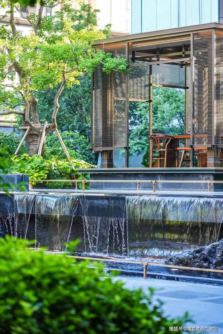 打造长约200米、近1000㎡水系景观,贯穿入口、庭院、归家轴线和景观主轴,采用五重造水形态,可行、可望、可游、可居,正是中式园林所追求的空间意境。