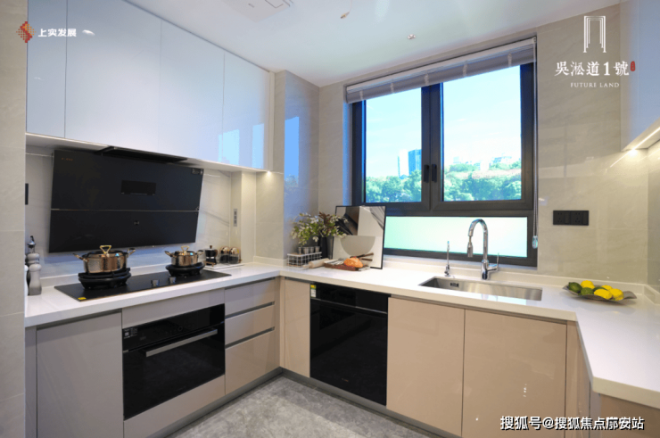 其次厨房配置很高,项目联合方太品牌, 配置高端玥影系列油烟机、灶具;还配置洗碗机、烘烤一体机 ,不用后期再买了。
