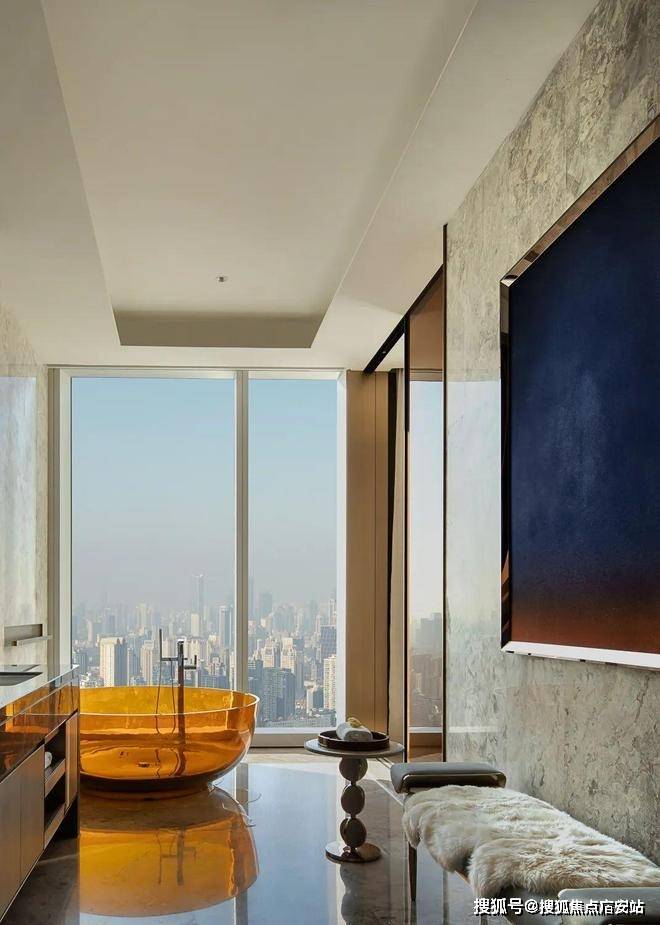 眼前是碧波荡漾,静静地透过落地窗户!那是百年外滩和滚滚黄浦江,天际线与地平线壮丽景色尽收眼底!这也是外滩,如此高度唯一无边泳池!