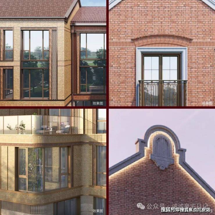 又例如,在“砖”这种材料的运用上,越秀·外滩樾更是做到了极致!用了老砖、陶砖、釉面砖和御窑金砖四种砖。