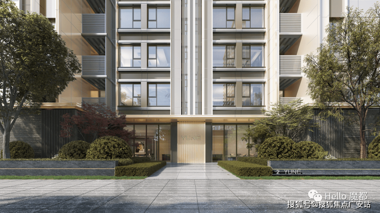 现代典雅立面,灰色搭配香槟金的色调,彰显不同建筑审美,外立面为品质铝板+玻璃幕墙,局部干挂石材和保温一体板,通过数控切割、精度弯弧、手工焊接、打磨抛光、七重清洁、烘干喷漆、高温定型等过十余步精细工艺,是高端住宅中品质最高的立面铝材。