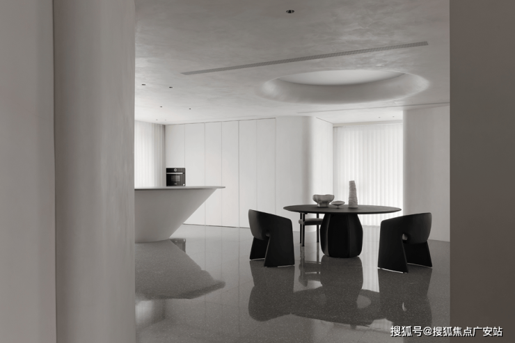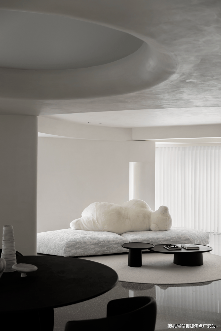 建筑无实体分隔作用,以微妙的空间区分,达成顺畅的自由度。采用微水泥色彩形成淡然基础调。流线架构赋予整体设计一层流动性美感。
