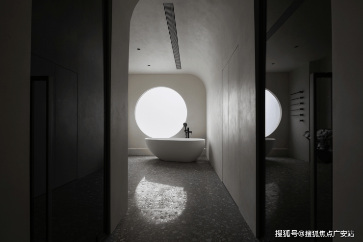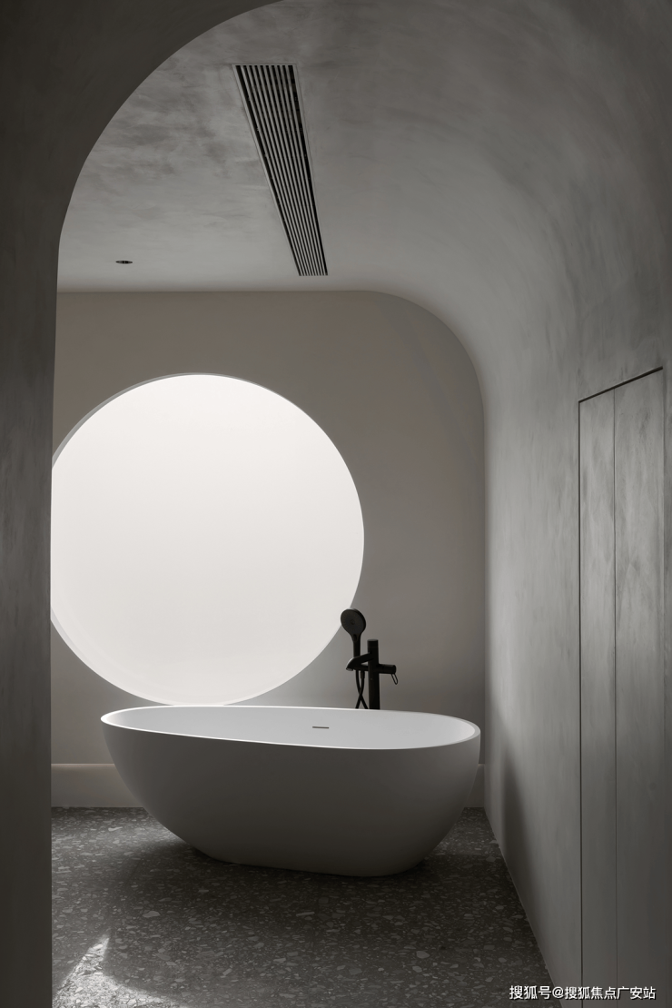沐浴间巧妙打破功能主义的限制,运用艺术曲线替换常规卫浴的机械观感,转而营造更治愈休闲的日常。