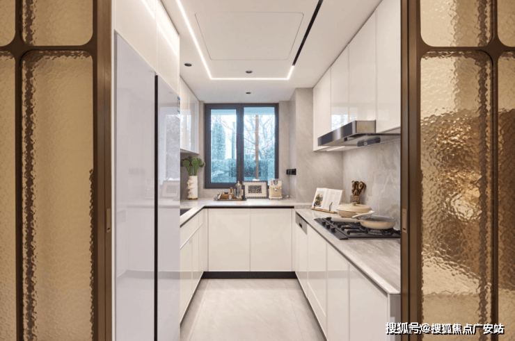 厨房采用深U型极致收纳设计,遵循“取、放、洗、切、炒”黄金动线,操作空间宽绰,收纳能力拉满,让厨房整洁有序