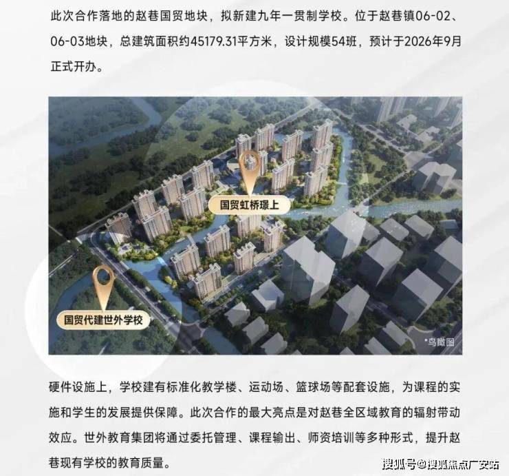 国贸为政府代建两所9年一贯制学校(小学+初中),紧邻项目西侧,一路之隔