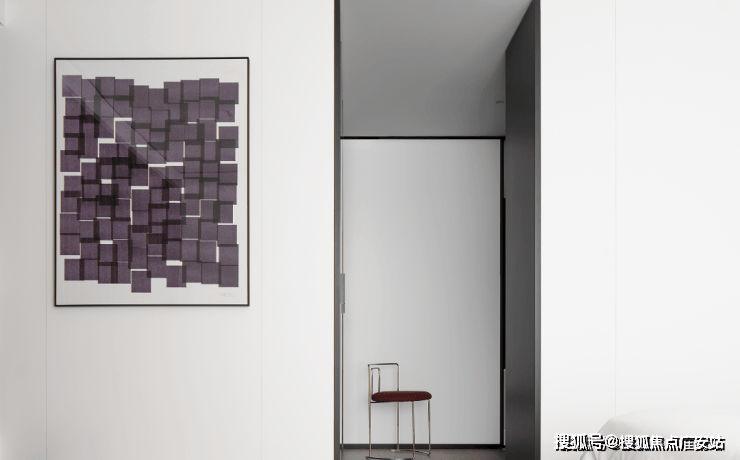 私密场域依旧保持静谧,黑白色基础上搭配了更多的色彩,例如深棕、浅紫等,艺术品的衬托深邃迷人,热络了家的氛围。