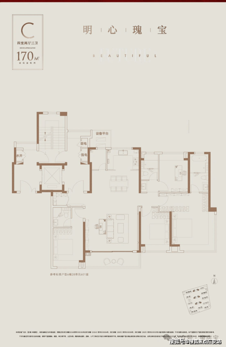 170户型通过“零走道”飞机式格局,采用电梯双开门的类一梯一户设计,极具注重隐私和尊贵体验感。四开间朝南的超大面宽,做到了客餐厅厨房一体化+双套房设计,还贴心配置了主卧独立浴缸、家政间和储藏室等,边户户型更享有270度转角飘窗。将居住功能性与品质感完美呈现,是市场上难得收藏之作。