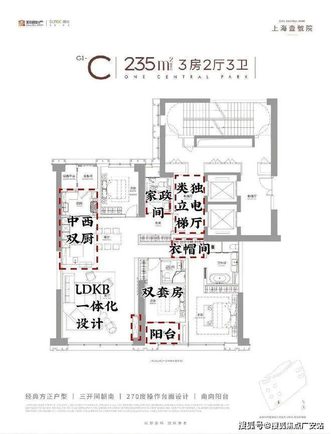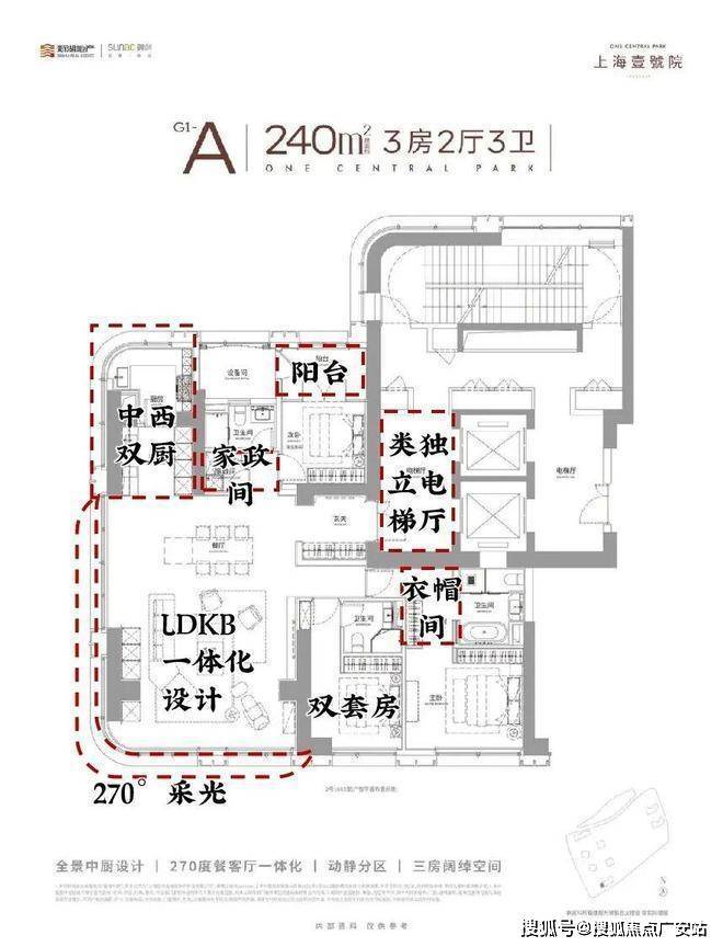 此外,全系采用两梯两户设计,电梯为对开门,电梯厅空间完全私享!在户型设计上,其最大约15m南向三面宽、5大弧形全景舱、中西厨设计等,通过通透格局与开阔视角,将私密性与全景视觉体验完美结合,以创新形态重塑高端住宅的空间美学标杆!在豪宅产品力打造这件事上,上海壹号院可谓是不断突破创新;