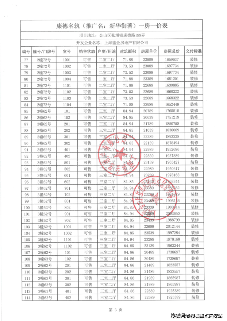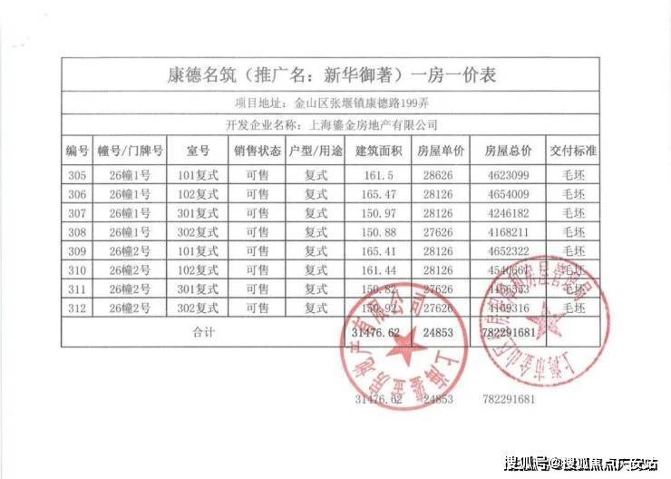 一房一价表如下: