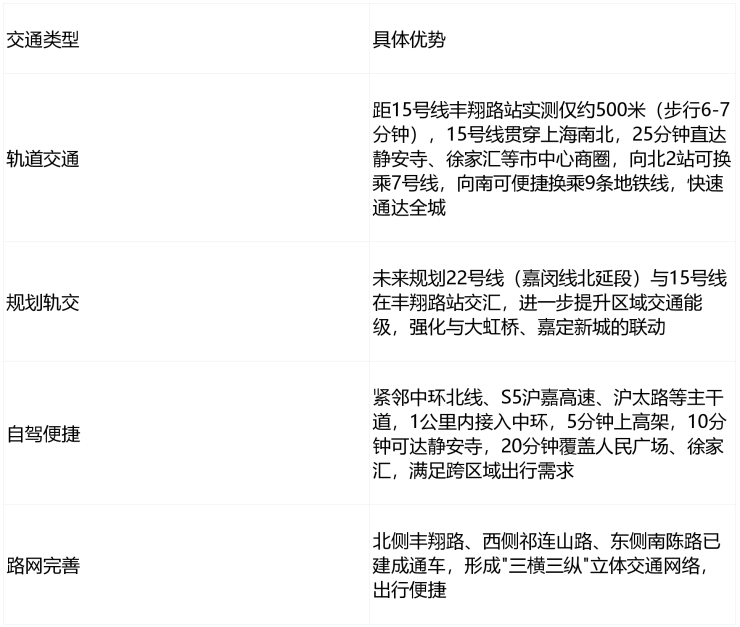 地铁15号线丰翔路站:直线距离约500米,步行约6-8分钟可达,4站达上海西站,5站至铜川路,9站抵娄山关路,可换乘9条地铁线