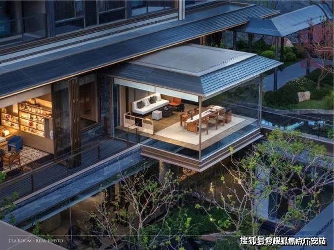叠拼已经做出实景展示,可以看到绿城将屋檐、立柱、栏杆等东方古典建筑符号进行了现代化转译,并大面积铺陈于建筑之上,让传统东方美学妥帖安放,又平添现代摩登质感。