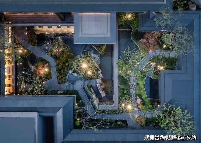 通过下沉会所庭院,将传统平面绿化转化为垂直的多层次园林空间,打造出了当代立体山体水景观,身处其中在步履起承转合间,串联起一幕幕诗画风景。