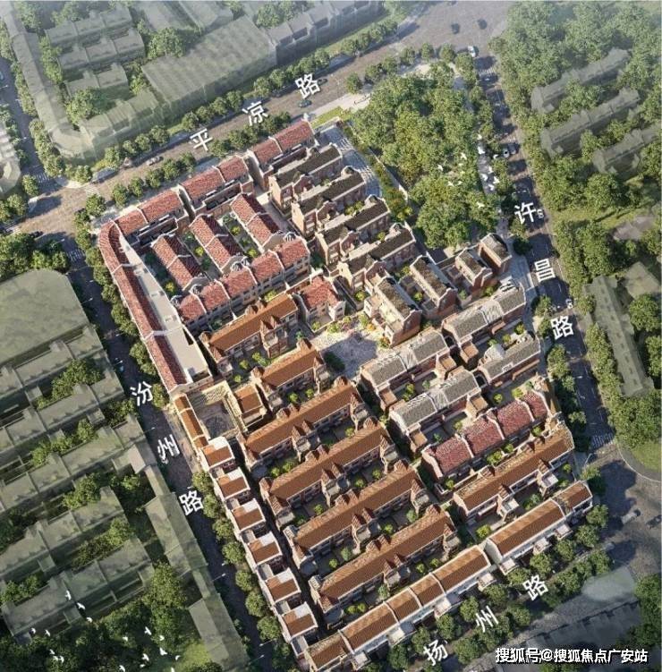 小区主出入口位于汾州路,人行出入口分别位于扬州路、许昌路、平凉路,社区内设置了物业、居民配套用房,西北角有一排3F的公共租赁项目。