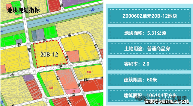 2024年11月27日,华润置地&越秀&中能建联合体竞得浦东新区Z000602单元20B-12地块,成交价78.97亿,楼面价74426元/㎡,溢价率40.37%。项目总占地面积53052方,容积率2.0,总建面165000方。其中,地上计容建面106104方,地上不计容建面8896方,地下建筑面积50000方,可售住宅高度约14~54米。