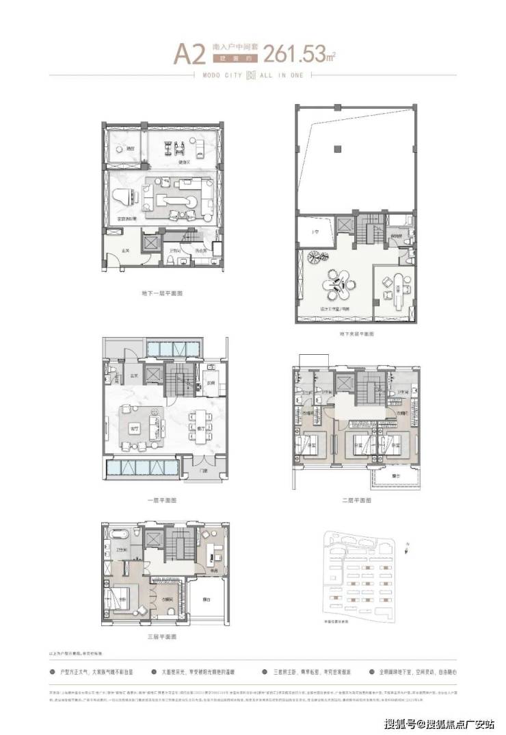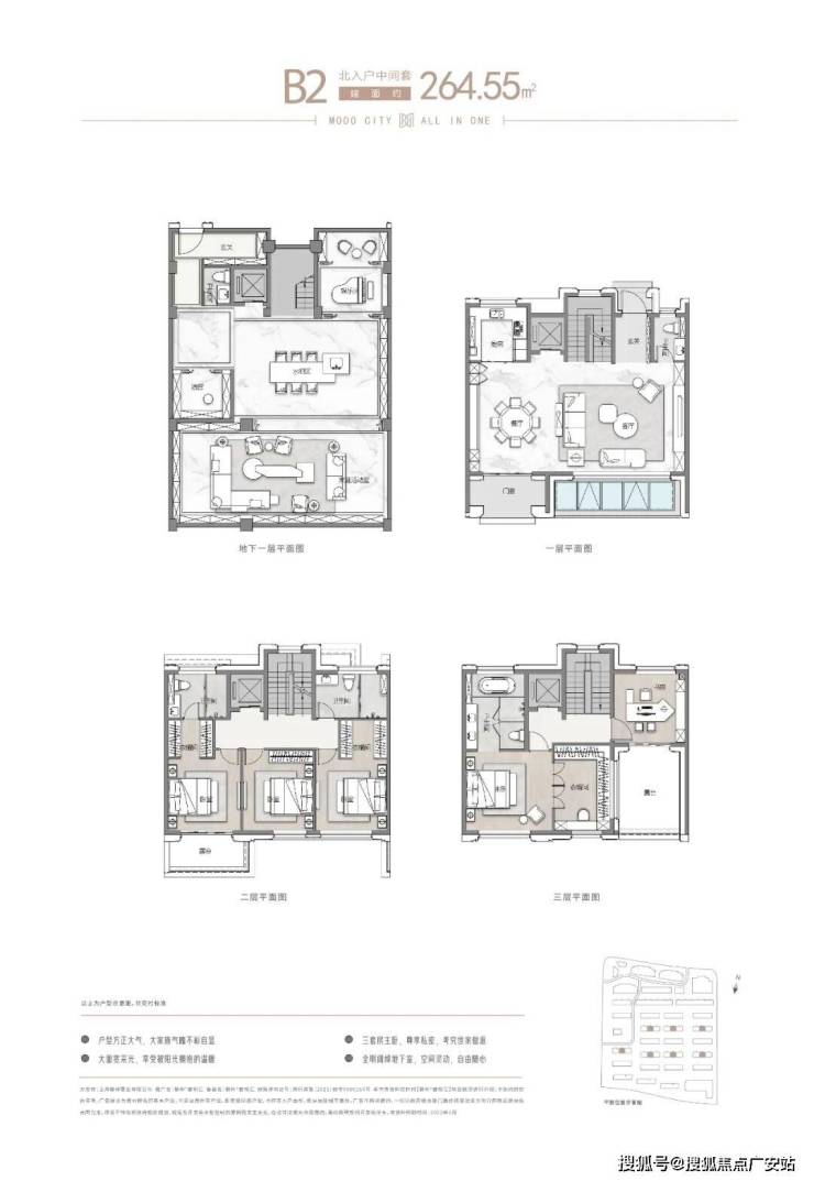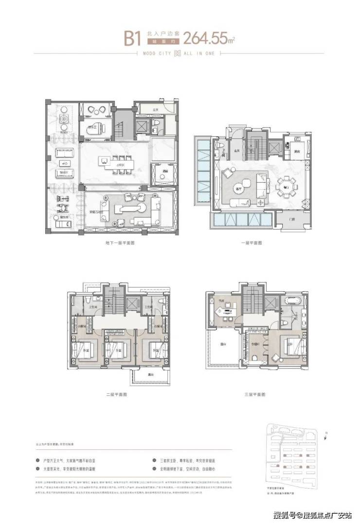 极致尺度:约 262-305㎡联排,南向大面宽,5 房朝南,户户私梯入户
