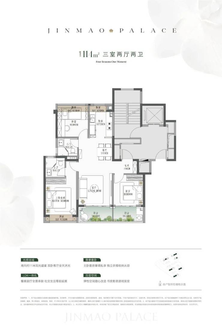 ●建面约114㎡3房:低总价上车首选,闭眼可冲。