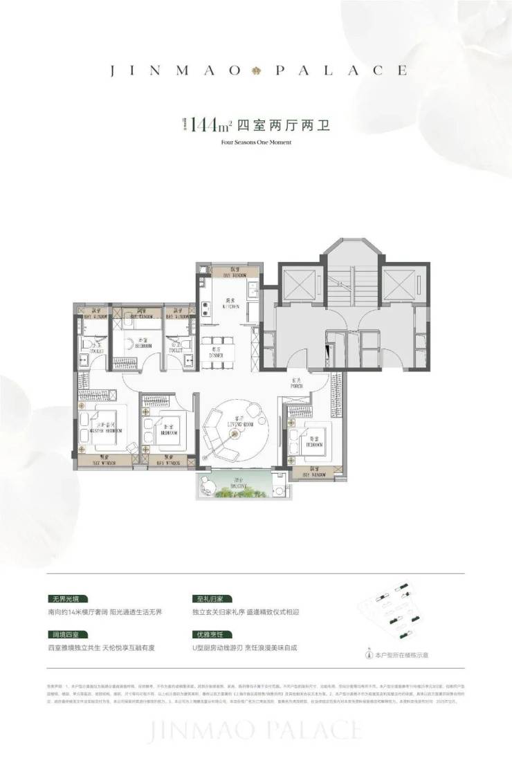 ●建面约144㎡4房:同价格在杨浦只有百平米3房可选。