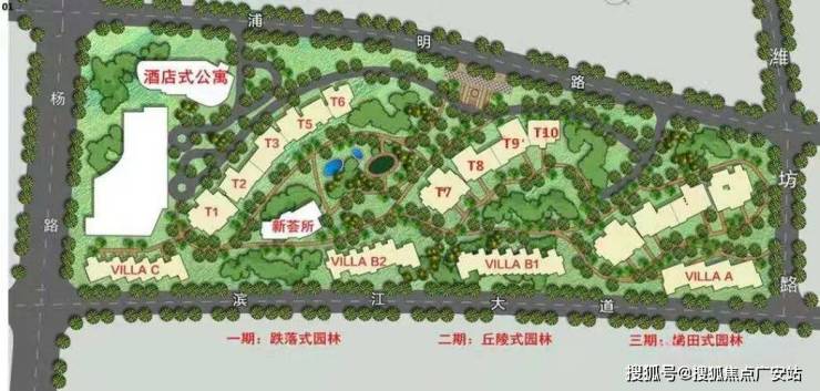 整体由1幢酒店公寓+13幢高层住宅+23栋临江别墅组成。