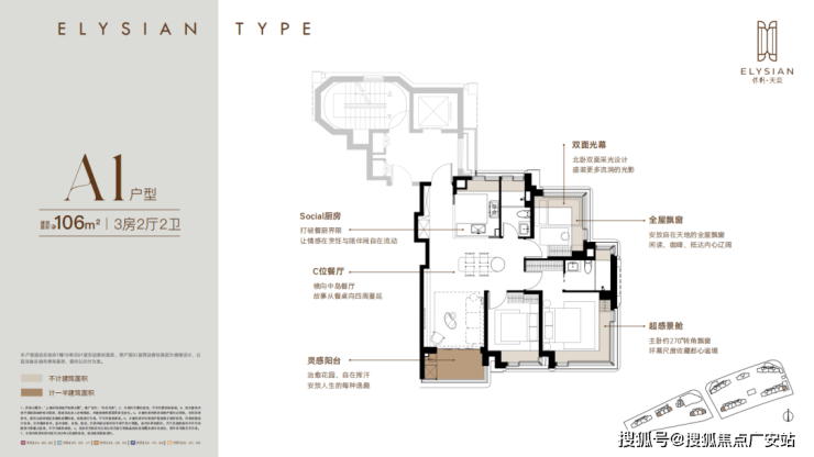每个户型至少6个飘窗,边套更是约270°转角瞰景。