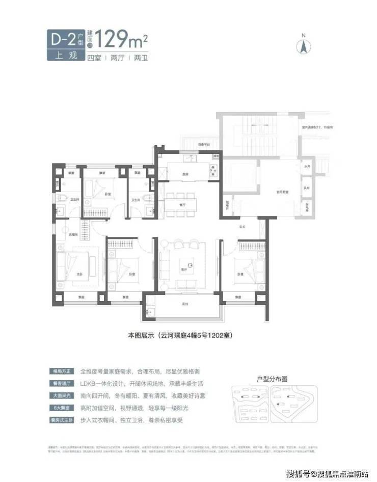 预算充足的小伙伴可以入手建面约129㎡4房2卫。