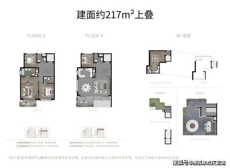 在所有叠墅户型中,下叠往往是更具“墅感”的,我们以主推的建面约200㎡下叠产品为例,来解析一下这个产品: