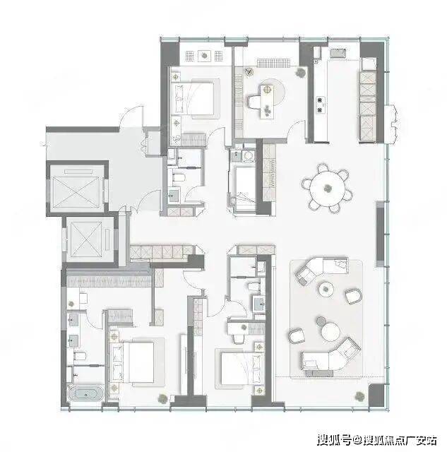 大平层:190㎡(四房两厅三卫)、220㎡(四房两厅三卫)、249㎡(四房两厅三卫)