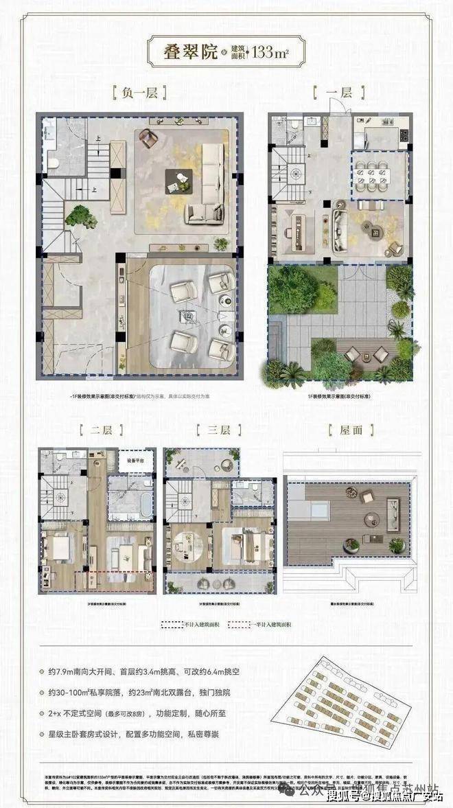 产品面积:约133-158㎡院墅臻品、约123㎡科技精装洋房