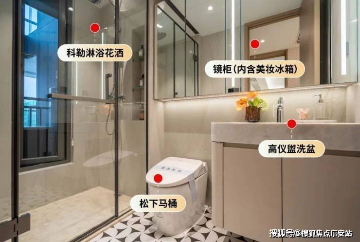 卫生间:高仪的盥洗盆,科勒的淋浴花洒,还特别配置了女主人超爱的美妆冰箱,仪式感满满。