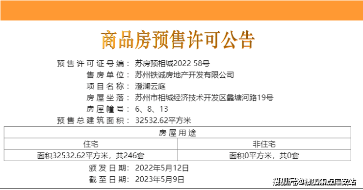 项目首次领取预售证,领证房源共246套,房源位于6、8、13幢,为总层高24-26层的高层产品,全装修交付。