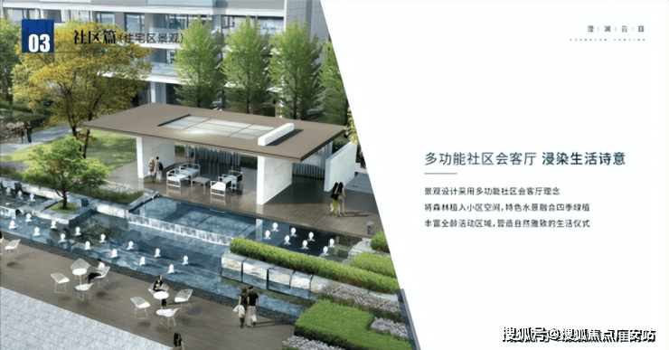 3.北大门处外部特设迎宾水景、内部设置阳光草坪、依仗树阵为业主打造尊崇归家仪式,