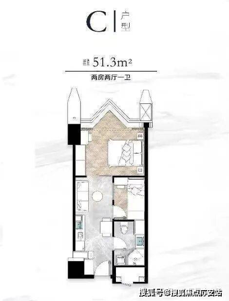 面积47.99㎡1房1厅188万阳光充沛边套全明通透