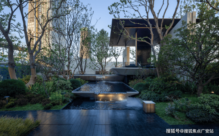 其中“点睛之笔”落在云崖悬厅,是以世界知名建筑“流水别墅”的美学为设计内核,8级落瀑从高处倾泻而下,水声潺潺间与下沉式景观相融。